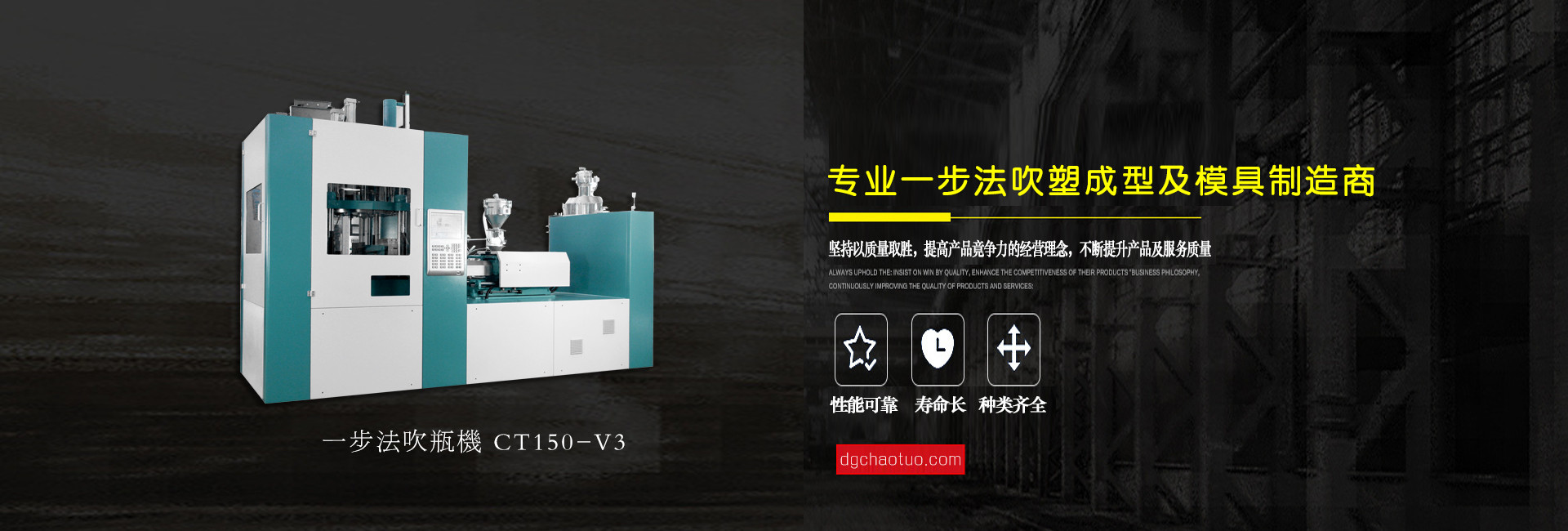 東莞超拓機械有限公司是一家專業(yè)設(shè)計生產(chǎn)一步法注吹機及相關(guān)配套模具的制造企業(yè), 公司自成立至今,始終以市場為導(dǎo)向、科技為基礎(chǔ)、質(zhì)量第一、用戶至上為服務(wù)宗旨,并一直在跟進(jìn)和學(xué)習(xí)世界上先進(jìn)的“注拉吹”中空成型技術(shù)專業(yè)領(lǐng)域配件制造和檢驗技術(shù),不斷地創(chuàng)新求異,其中PPSU奶瓶領(lǐng)先國內(nèi)同行業(yè),堅持“超越拓展,品質(zhì)保證”的企業(yè)文化理念,為客戶提供上乘服務(wù)。公司總經(jīng)理姜業(yè)東攜全體員工衷心感謝新老客戶的支持和關(guān)愛,竭誠歡迎各位朋友蒞臨指導(dǎo)與合作,共圖發(fā)展。